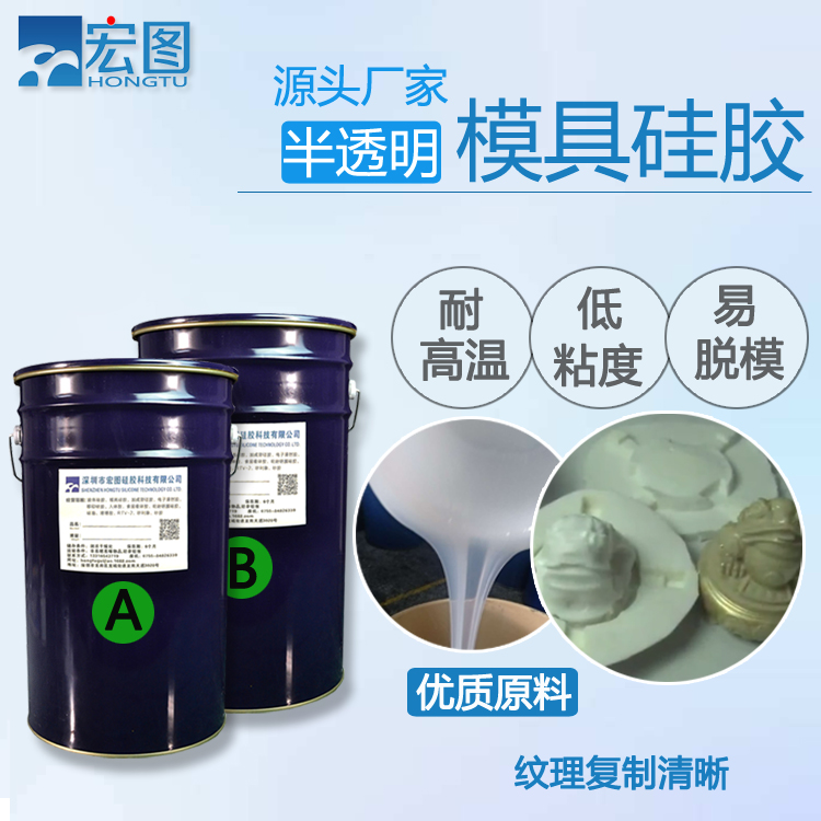 半透明模具硅膠是一種雙組份環(huán)保型硅膠,由A、B雙組份構成,可常溫固化也可加溫固化成型。流動性好,可灌注也可涂刷,操作簡單。